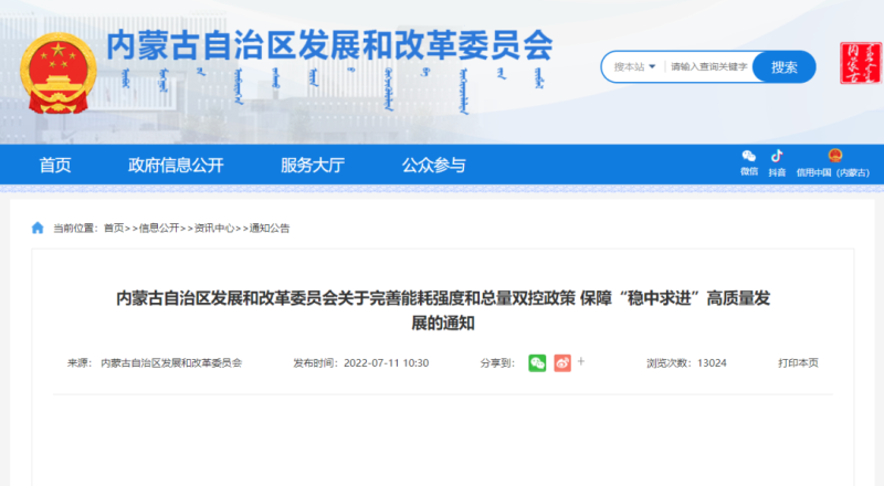 中國(guó)儲(chǔ)能網(wǎng)訊:近日,內(nèi)蒙古自治區(qū)發(fā)改委發(fā)布《關(guān)于完善能耗強(qiáng)度和總量雙控政策 保障“穩(wěn)中求進(jìn)”高質(zhì)量發(fā)展的通知》(內(nèi)發(fā)改環(huán)資字〔2022〕103號(hào)),明確提出:新增可再生能源消費(fèi)量不納入能耗總量考核。以各盟市2020年可再生能源電力消費(fèi)量為基數(shù),對(duì)各盟市“十四五”期間新增的可再生能源電力消費(fèi)量,在能耗總量考核時(shí)予以扣除。原文入下:
