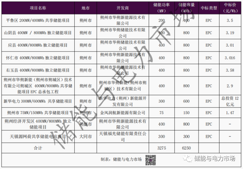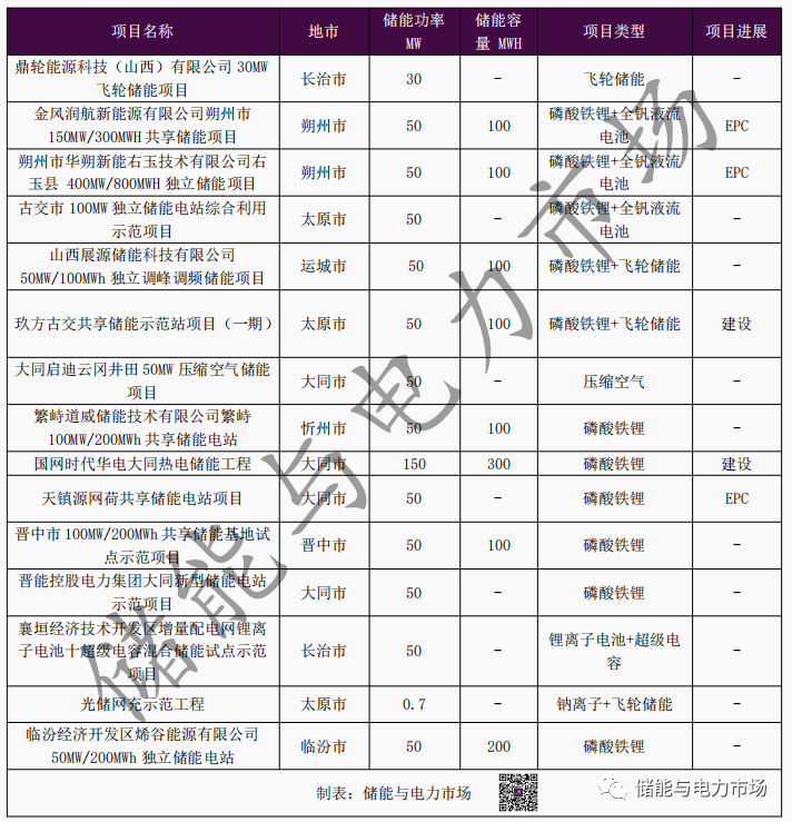山西進(jìn)入EPC招標(biāo)階段的獨立儲能項目