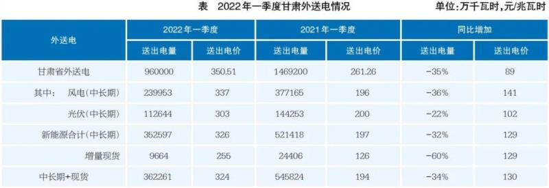 問(wèn)題五:打擊或阻礙新能源的外送消納。2022年一季度,甘肅省外送電價(jià)大幅增加,但外送電量大幅減少。2022年一季度,跨區(qū)跨省外送電量96.00億千瓦時(shí),同比下降35%。送電均價(jià)350.51元/兆瓦時(shí),提高89元/兆瓦時(shí)。其中新能源外送電量36.22億千瓦時(shí)、同比下降34%,新能源送電均價(jià)324元/兆瓦時(shí)、同比升高130元/兆瓦時(shí)、增長(zhǎng)高達(dá)67%。鑒于2022年跨區(qū)跨省外送電價(jià)高,同比提升幅度也大,省內(nèi)新能源外送積極性很高。但強(qiáng)制不低于90%的年度中長(zhǎng)期帶電力合約量政策,使得新能源企業(yè)不得不考慮中長(zhǎng)期高倉(cāng)位帶來(lái)的高風(fēng)險(xiǎn),后期除非外送電價(jià)特別高,否則高倉(cāng)位或者接近滿倉(cāng)位下,新能源企業(yè)都不敢也沒有意愿簽訂外送電合同了,這必然會(huì)影響外送消納,進(jìn)而增加新能源棄電率(見表)。