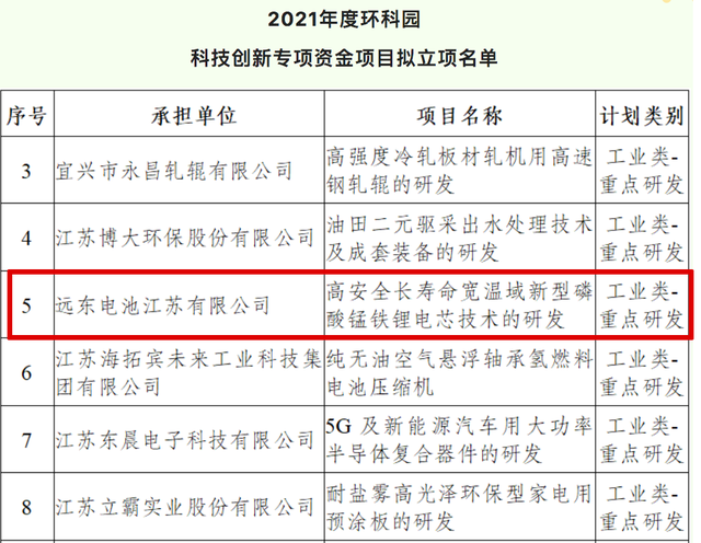 中國(guó)儲(chǔ)能網(wǎng)訊:日前,中國(guó)宜興環(huán)??萍脊I(yè)園管理委員會(huì)對(duì)外公布2021年度宜興市科技創(chuàng)新專項(xiàng)資金項(xiàng)目名單,遠(yuǎn)東智慧能源股份有限公司(簡(jiǎn)稱:遠(yuǎn)東股份,股票代碼:600869)旗下遠(yuǎn)東電池江蘇有限公司主導(dǎo)的“高安全長(zhǎng)壽命寬溫域新型磷酸錳鐵鋰電芯技術(shù)的研發(fā)”項(xiàng)目順利入圍。