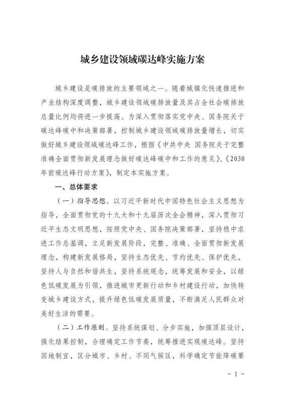 印發(fā)城鄉(xiāng)建設(shè)領(lǐng)域碳達(dá)峰實(shí)施方案的通知