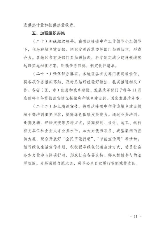 《城鄉(xiāng)建設(shè)領(lǐng)域碳達(dá)峰實(shí)施方案》已經(jīng)碳達(dá)峰碳中和工作領(lǐng)導(dǎo)小組審議通過(guò),現(xiàn)印發(fā)給你們,請(qǐng)認(rèn)真貫徹落實(shí)。