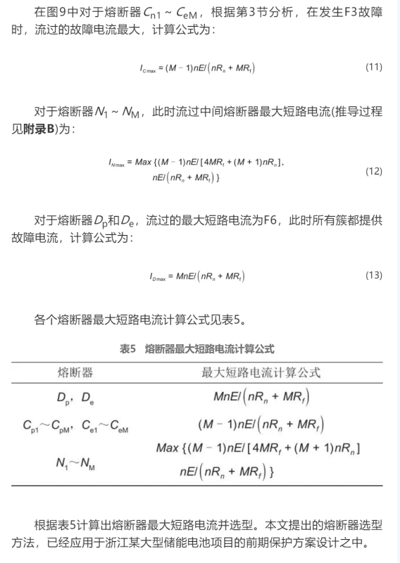 根據(jù)表5計(jì)算出熔斷器最大短路電流并選型。本文提出的熔斷器選型方法,已經(jīng)應(yīng)用于浙江某大型儲(chǔ)能電池項(xiàng)目的前期保護(hù)方案設(shè)計(jì)之中。