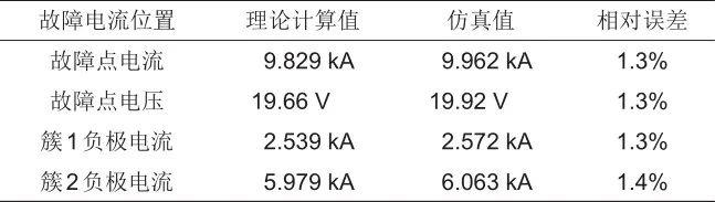 表4 簇間短路各處電氣量理論計(jì)算值與仿真誤差