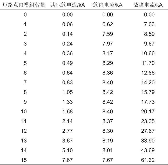 表2 短路點(diǎn)內(nèi)不同模組數(shù)量各處電流理論計(jì)算值