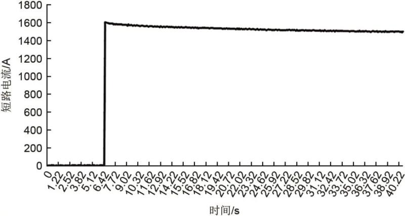 由圖3可見(jiàn),發(fā)生短路后直流短路電流快速上升,峰值電流在1604 A,并隨著電池電量流失短路電流緩慢下降。