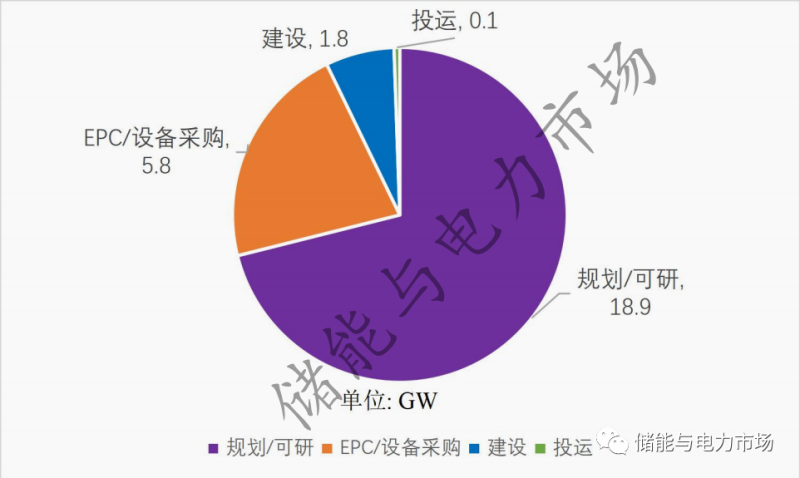 53.6GWh VS 18.55GWh,進入實際投運/建設(shè)/啟動建設(shè)狀態(tài)的項目占總規(guī)劃項目的34.6%。