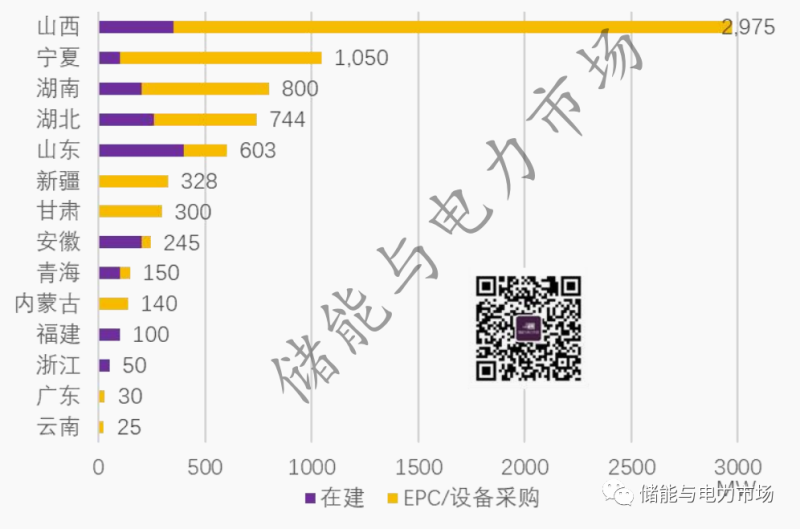 圖:2022年上半年各地已開工和已啟動EPC/設(shè)備采購的獨立式儲能項目規(guī)模