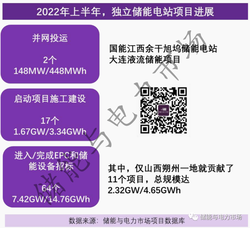 圖 2022年上半年獨立式儲能項目進展
