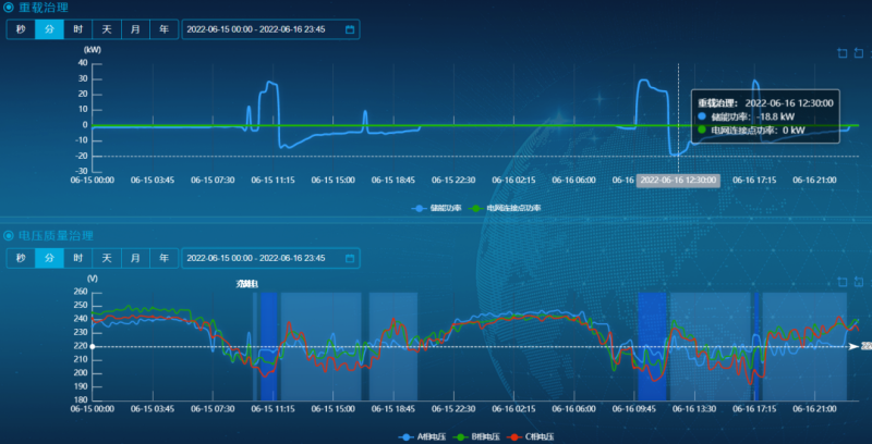 接入移動儲能系統(tǒng)后,通過無功補償、有功補償、三相不平衡治理來抬升線路的功率因數(shù),使電壓穩(wěn)定在220伏左右,當臺區(qū)用戶端電壓在正常范圍時,儲能自動充電備用。電壓穩(wěn)定后,居民用電設(shè)備可以正常運行,用電質(zhì)量整體提高,末端低電壓問題迎刃而解。