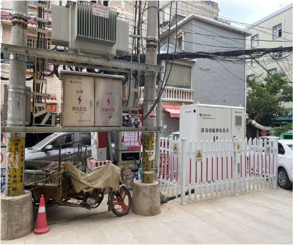 分布式移動儲能設(shè)備占地面積小、布點靈活、不占用居民生活用地,通過T接的方式接入到380伏低壓線路上,接入拆除非常方便,即插即用。