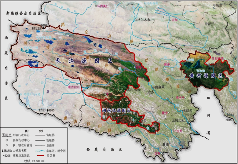 三江源國家公園衛(wèi)星遙感影像圖(圖源:國家發(fā)展改革委,三江源國家公園總體規(guī)劃,2018)