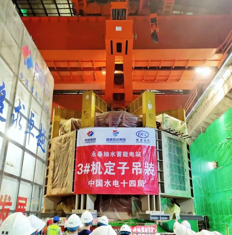 中國(guó)儲(chǔ)能網(wǎng)訊:7月15日,福建永泰抽水蓄能電站3號(hào)機(jī)定子吊裝就位,這是繼主廠房主體結(jié)構(gòu)全面封頂后的又一重大節(jié)點(diǎn),標(biāo)志著3號(hào)機(jī)組進(jìn)入安裝關(guān)鍵時(shí)期。
