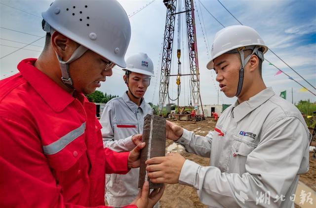 中國能建的建設(shè)者進行深層鉆孔取芯,勘探地下地質(zhì)條件。(湖北日報全媒記者 柯皓 通訊員趙雪明 攝)