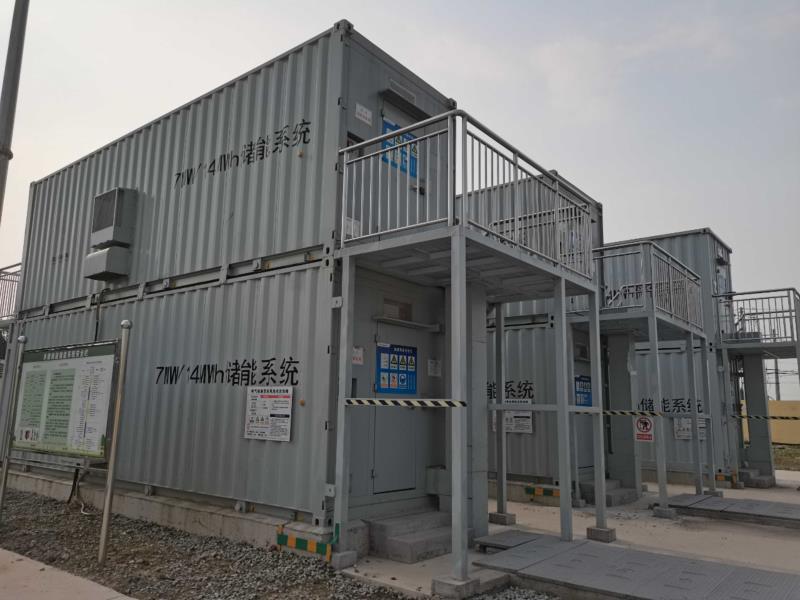 本項目儲能系統(tǒng)施工由國核電力規(guī)劃設計研究院有限公司(EPC總承包)承建,配置容量為2個2MW/4MWh儲能單元(科華恒盛有限公司)及一套EMS儲能電站綜合管理及監(jiān)控系統(tǒng)(國電南瑞南京控制有限公司),電池艙(天津力神)及PCS艙布置在升壓站西北側,每個儲能單元由南向北依次排列,EMS儲能電站綜合管理及監(jiān)控系統(tǒng)布置在配電樓繼保室內,于2021年3月投運。