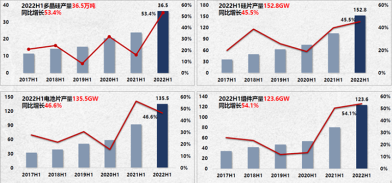 2022年上半年我國(guó)光伏制造端各環(huán)節(jié)發(fā)展概況