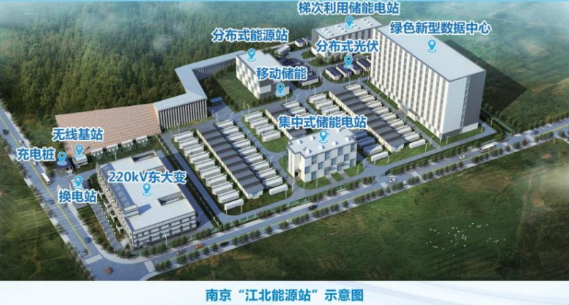南京“江北能源站”位于江北新區(qū)醫(yī)藥谷片區(qū),占地68畝,是國內(nèi)首座集合220千伏變電站、大規(guī)模集中式儲能、梯次利用儲能、分布式能源站、綠色新型數(shù)據(jù)中心、無線基站等十大元素的 “多站融合”能源綜合服務(wù)站。