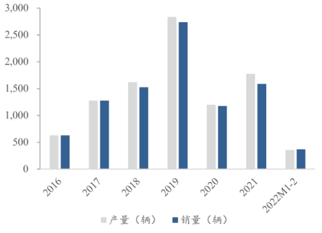 圖3 我國氫能源車產(chǎn)量銷量情況