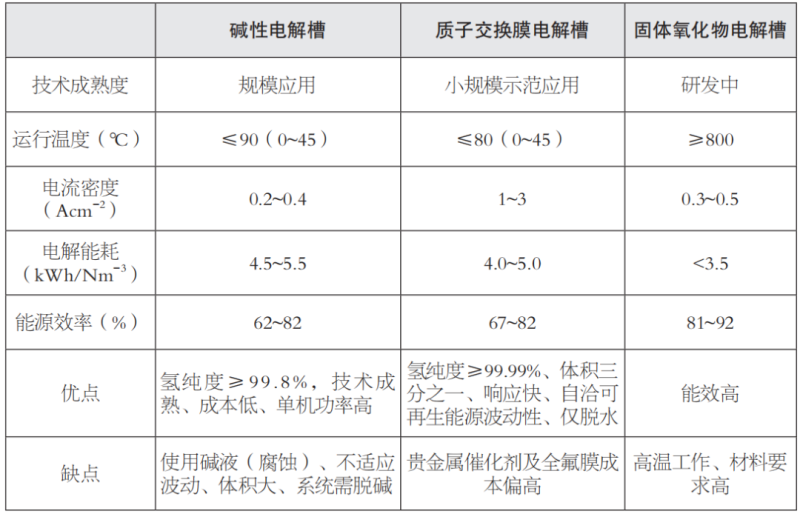 表2 我國主要電解水制氫技術(shù)優(yōu)缺點對比