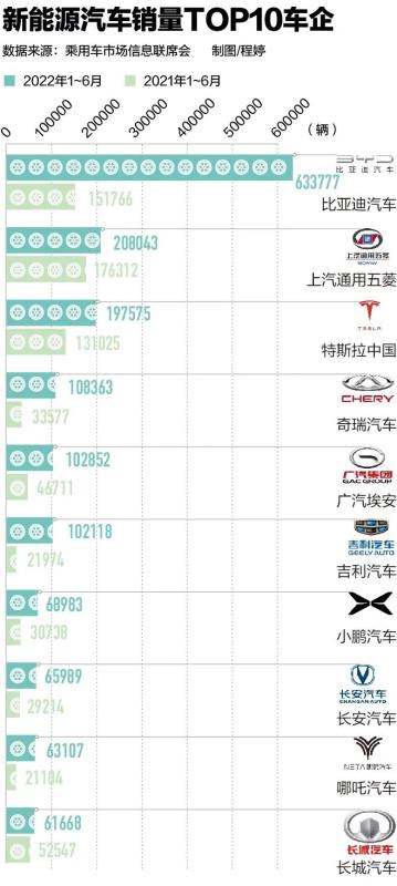 數(shù)據(jù)顯示,比亞迪今年上半年售出64.1萬輛汽車,同比增長高達(dá)300%以上,這一數(shù)字超過了特斯拉56.4萬輛的半年銷量?!氨葋喌弦呀?jīng)率先宣布從今年3月起停止燃油汽車生產(chǎn),將專注純電動(dòng)和插電混動(dòng)汽車業(yè)務(wù)?!蓖鮽鞲Uf。