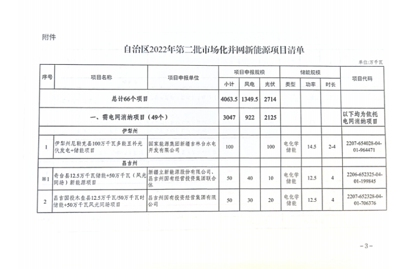 中國儲(chǔ)能網(wǎng)訊:近日,新疆公布2022年第二批市場化并網(wǎng)新能源項(xiàng)目清單,總計(jì)66個(gè)項(xiàng)目,規(guī)??傆?jì)為40.63GW,其中光伏為27.14GW,風(fēng)電為13.49GW,儲(chǔ)能超6.9GW。其中有32個(gè)項(xiàng)目為近1個(gè)月內(nèi)購開工建設(shè)的項(xiàng)目,按照地州及企業(yè)承諾以盡快開工。源網(wǎng)荷儲(chǔ)一體化項(xiàng)目不得向大電網(wǎng)送電。