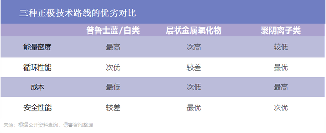 綜合研究得知,三種技術(shù)路線各有所長,并無明顯的優(yōu)劣之分,且均已有產(chǎn)品面世。但在已有投產(chǎn)下線的13家企業(yè)中,選擇層狀金屬氧化物和普魯士藍類路線的企業(yè)數(shù)量明顯多于聚陰離子類路線企業(yè)。