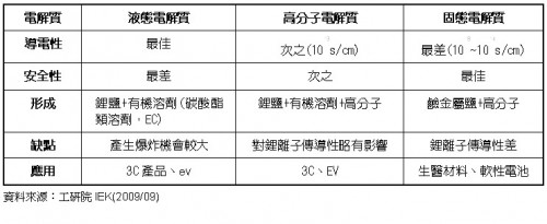 表三 鋰電池電解質(zhì)比較