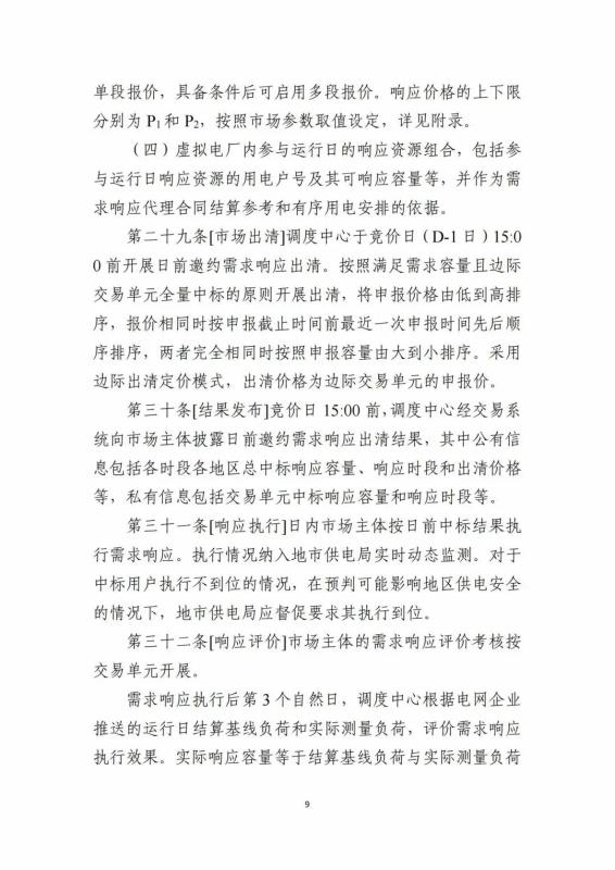 現(xiàn)階段可響應時段默認為所發(fā)布的需求響應時段。響應價格現(xiàn)階段響應價格為9單段報價,具備條件后可啟用多段報價。日前邀約申報價格上限為3500元/MWh;日前邀約虛擬電廠申報可響應容量下限0.3MW,可中斷負荷申報價格上限為5000元/MWh;可中斷負荷虛擬電廠申報可響應容量下限為0.3MW。