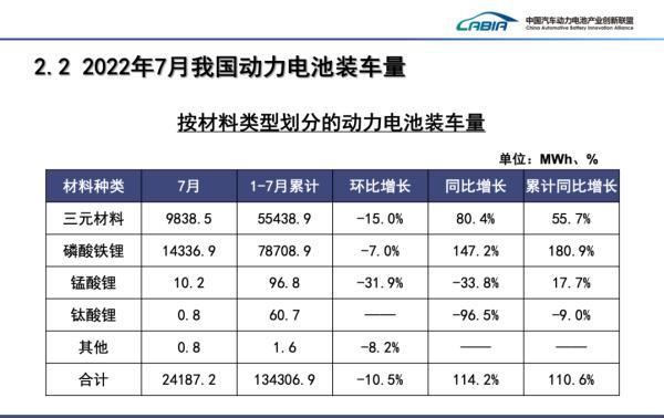 裝車(chē)量方面,磷酸鐵鋰電池呈現(xiàn)出了迅猛勢(shì)頭,累計(jì)同比增長(zhǎng)率超過(guò)了三元鋰電池的3倍。7月,我國(guó)動(dòng)力電池裝車(chē)量24.2GWh,同比增長(zhǎng)114.2%,環(huán)比下降10.5%。其中三元電池裝車(chē)量9.8GWh,占總裝車(chē)量40.7%,同比增長(zhǎng)80.4%,環(huán)比下降15.0%;磷酸鐵鋰電池裝車(chē)量14.3GWh,占總裝車(chē)量59.3%,同比增長(zhǎng)147.2%,環(huán)比下降7.0%。1-7月,我國(guó)動(dòng)力電池累計(jì)裝車(chē)量134.3GWh,累計(jì)同比增長(zhǎng)110.6%。其中三元電池累計(jì)裝車(chē)量55.4GWh,占總裝車(chē)量41.3%,累計(jì)同比增長(zhǎng)55.7%;磷酸鐵鋰電池累計(jì)裝車(chē)量78.7GWh,占總裝車(chē)量58.6%,累計(jì)同比增長(zhǎng)180.9%。