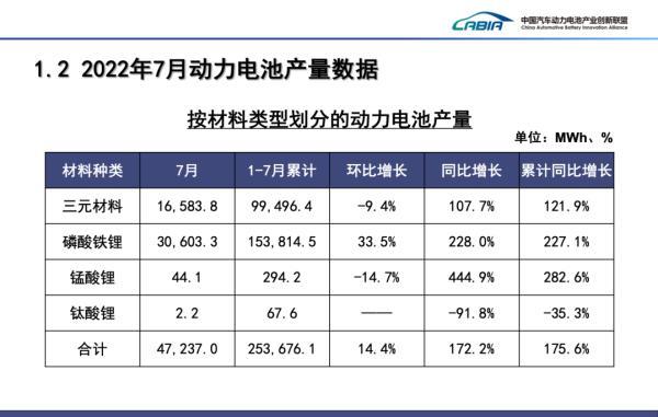 我國(guó)動(dòng)力電池總產(chǎn)量繼續(xù)飛速增長(zhǎng)。7月,動(dòng)力電池產(chǎn)量共計(jì)47.2GWh,同比增長(zhǎng)172.2%,環(huán)比增長(zhǎng)14.4%。其中三元電池產(chǎn)量16.6GWh,占總產(chǎn)量35.1%,同比增長(zhǎng)107.7%,環(huán)比下降9.4%;磷酸鐵鋰電池產(chǎn)量30.6GWh,占總產(chǎn)量64.8%,同比增長(zhǎng)228%,環(huán)比增長(zhǎng)33.5%。1-7月,我國(guó)動(dòng)力電池累計(jì)產(chǎn)量253.7GWh,累計(jì)同比增長(zhǎng)175.6%。其中三元電池累計(jì)產(chǎn)量99.5GWh,占總產(chǎn)量39.2%,累計(jì)同比增長(zhǎng)121.9%;磷酸鐵鋰電池累計(jì)產(chǎn)量153.8GWh,占總產(chǎn)量60.6%,累計(jì)同比增長(zhǎng)227.1%。