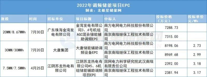 除此之外,廣東珠海金灣發(fā)電有限公司3、4號機組AGC混合儲能調(diào)頻項目因采用2C磷酸鐵鋰系統(tǒng)以及超級電容技術(shù),項目平均單價在8元/Wh以上。