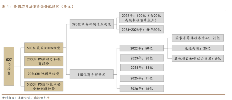 芯片法案包含兩個(gè)核心內(nèi)容:一是向半導(dǎo)體行業(yè)提供約527億美元的資金支持,并為企業(yè)提供價(jià)值240億美元的投資稅抵免,鼓勵(lì)企業(yè)在美國(guó)研發(fā)和制造芯片;二是在未來幾年提供約2000億美元的科研經(jīng)費(fèi)支持,重點(diǎn)支持人工智能、機(jī)器人技術(shù)、量子計(jì)算等前沿科技。