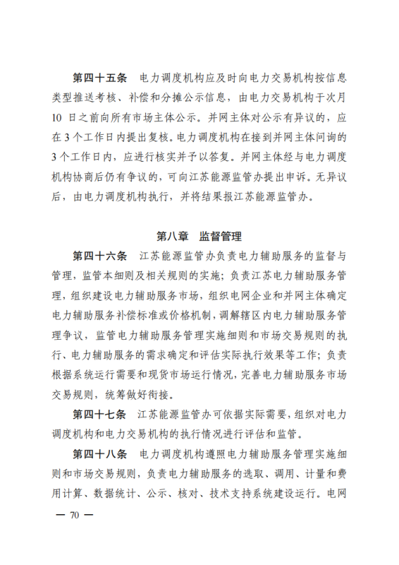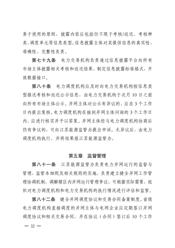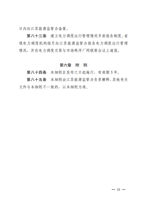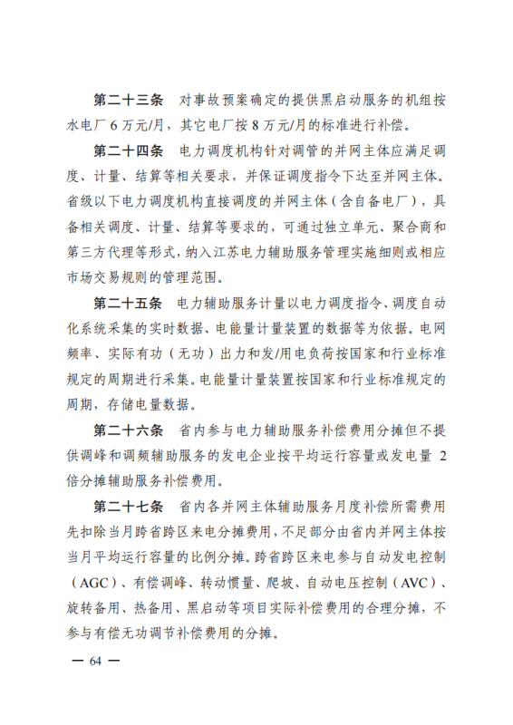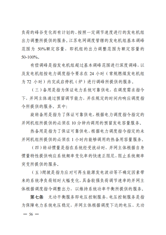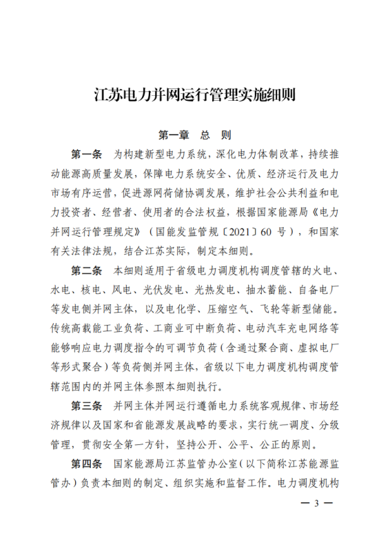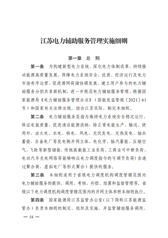 為深入貫徹落實(shí)黨中央、國(guó)務(wù)院關(guān)于深化電力體制改革的決策部署,構(gòu)建新型電力系統(tǒng),推動(dòng)“碳達(dá)峰、碳中和”目標(biāo)落實(shí),進(jìn)一步規(guī)范我省電力系統(tǒng)并網(wǎng)運(yùn)行管理,持續(xù)推進(jìn)電力輔助服務(wù)市場(chǎng)機(jī)制建設(shè),根據(jù)國(guó)家能源局《電力并網(wǎng)運(yùn)行管理規(guī)定》(國(guó)能發(fā)監(jiān)管規(guī)〔2021〕60號(hào))、《電力輔助服務(wù)管理辦法》(國(guó)能發(fā)監(jiān)管規(guī)〔2021〕61號(hào))有關(guān)要求,在廣泛征求意見(jiàn)基礎(chǔ)上,我辦制訂了《江蘇電力并網(wǎng)運(yùn)行管理實(shí)施細(xì)則》《江蘇電力輔助服務(wù)管理實(shí)施細(xì)則》,現(xiàn)印發(fā)給你們,請(qǐng)認(rèn)真貫徹執(zhí)行。