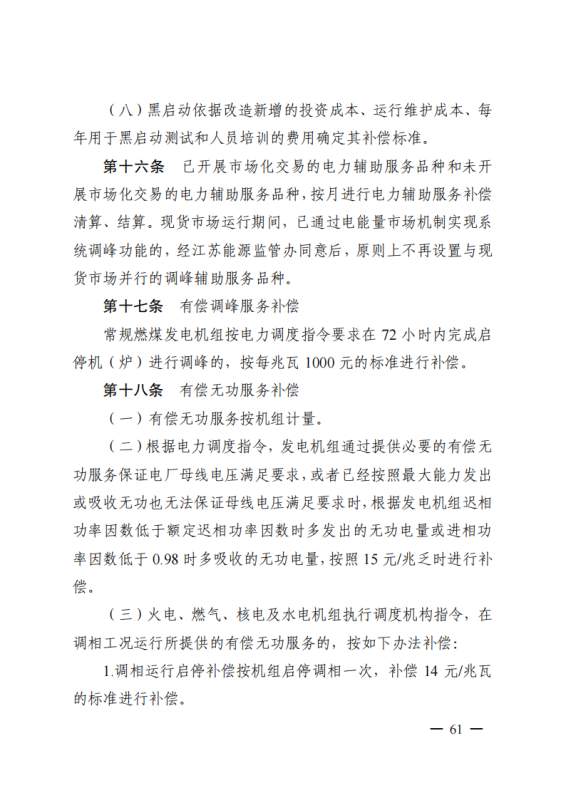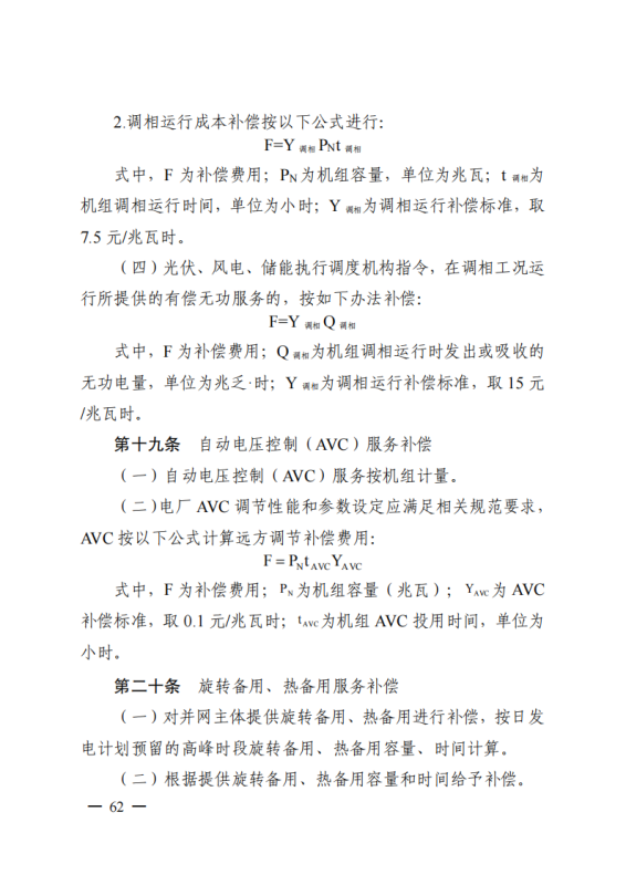 光伏、風(fēng)電、儲(chǔ)能執(zhí)行調(diào)度機(jī)構(gòu)指令,在調(diào)相工況運(yùn)行所提供的有償無(wú)功服務(wù)的,按15元/兆瓦時(shí)補(bǔ)償。