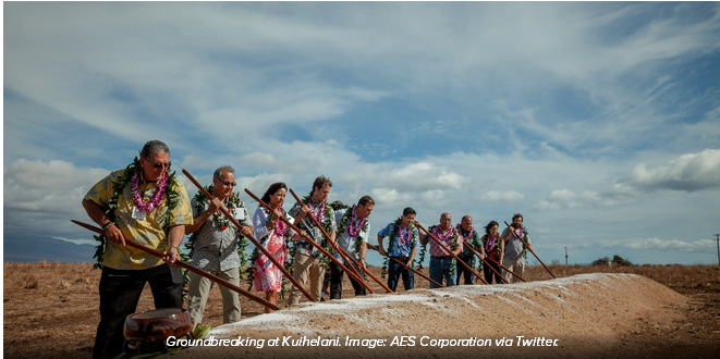 AES公司的高管及其夏威夷子公司的代表與毛伊島市長、當?shù)厣鐓^(qū)成員和其他利益相關(guān)者一起出席了開工儀式。