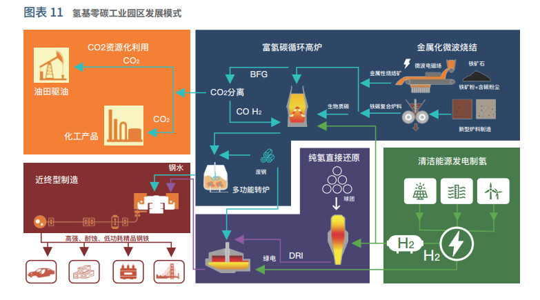 由于中國(guó)鋼鐵生產(chǎn)中用于提供高溫的燃料燃燒造成的排放和以焦炭為主要還原劑的反應(yīng)過(guò)程排放,難以通過(guò)電氣化的方式實(shí)現(xiàn)完全脫碳,且能效提升和廢鋼利用等方式的減排潛力有限,對(duì)因此利用可再生氫替代焦炭進(jìn)行直接還原鐵生產(chǎn)并配加電爐煉鋼的模式將成為鋼鐵行業(yè)完全脫碳最關(guān)鍵、最具前景的解決方案之一。