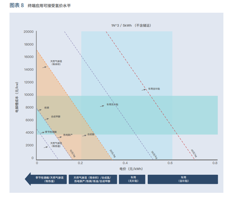 對(duì)于工業(yè)應(yīng)用場(chǎng)景而言,考慮相關(guān)儲(chǔ)運(yùn)成本,只有制氫電價(jià)低于0.1元、設(shè)備成本低于4000元/kW時(shí)才能具備替代可行性,對(duì)資源條件和技術(shù)水平的要求近乎苛刻。
