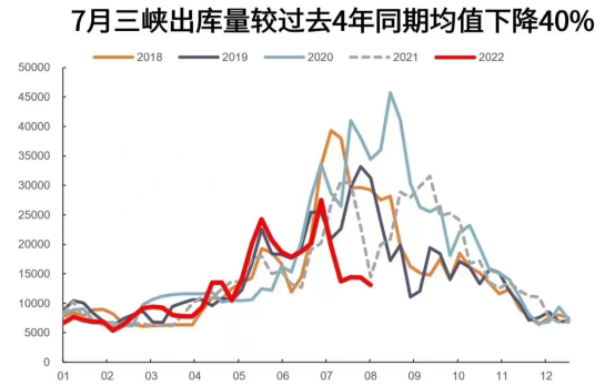 從水利角度來看,今年旱情嚴重,嚴重影響了長江流域的水量。6月中旬以來,長江流域降水由偏多轉(zhuǎn)為偏少,其中,6月下旬偏少2成,7月偏少3成多,尤其是長江下游干流及鄱陽湖水系偏少5成左右,為近10年同期最少。