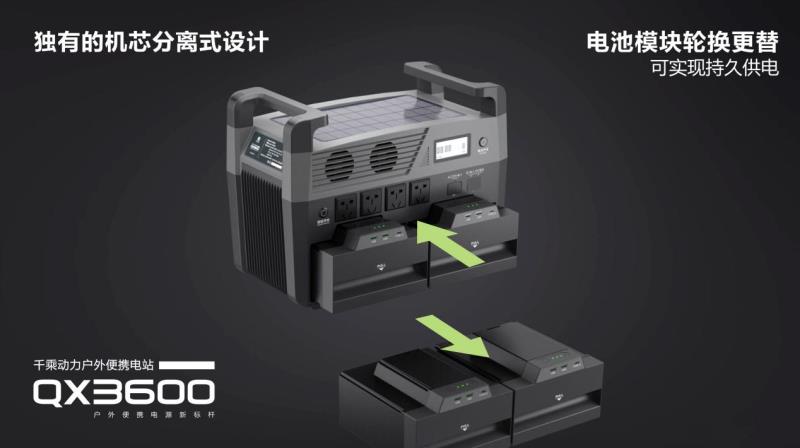 千乘動(dòng)力戶外便攜電站,主機(jī)和一個(gè)電池模塊可分開在不同場(chǎng)景進(jìn)行應(yīng)用,主機(jī)機(jī)身有4個(gè)220V交流輸出接口、2個(gè) 120W 點(diǎn)煙器輸出接口,1個(gè)220V交流輸入接口、1個(gè)車載充電輸入接口和1個(gè)太陽(yáng)能充電輸入接口。千乘動(dòng)力戶外便攜電站一共兩個(gè)電池模塊,每個(gè)電池模塊有1.8度電,自帶1個(gè)TYPE-C輸出接口、2個(gè)USB 輸出接口。電池模塊可單獨(dú)抽出作為獨(dú)立電源,為3C類等數(shù)碼電器供電。同時(shí)兩個(gè)電池模塊可輪流更替工作,一個(gè)抽出補(bǔ)電一個(gè)繼續(xù)工作,這樣可使主機(jī)持續(xù)供電。另外還具有UPS不間斷電源功能,從此讓工作不為斷電發(fā)愁。