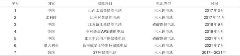 表2 全球鋰離子電池儲能電站火災事故不完全統(tǒng)計