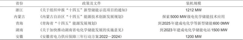 表1 各地方出臺“十四五”規(guī)劃文件電化學儲能裝機量