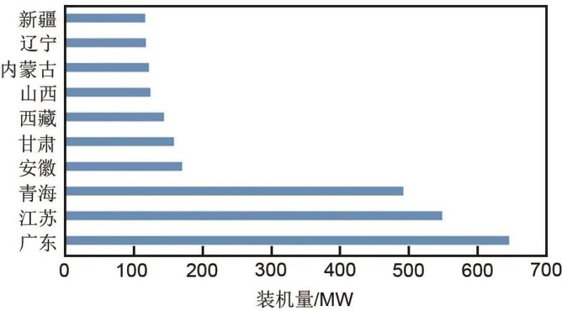 圖1 2020年國內(nèi)電化學儲能裝機主要省份及裝機量