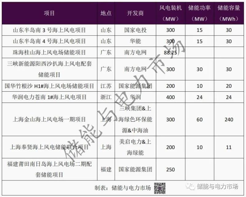 表:已啟動海上風電配儲能項目