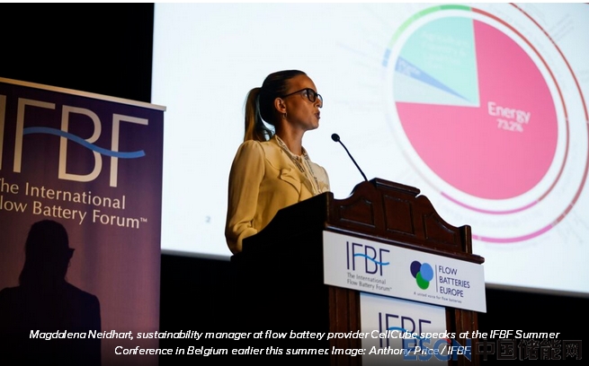 液流電池供應(yīng)商CellCube公司可持續(xù)發(fā)展經(jīng)理Magdalena Neidhart在今年夏天在比利時(shí)舉行的國(guó)際液流電池論壇(IFBF)夏季會(huì)議上發(fā)表演講
