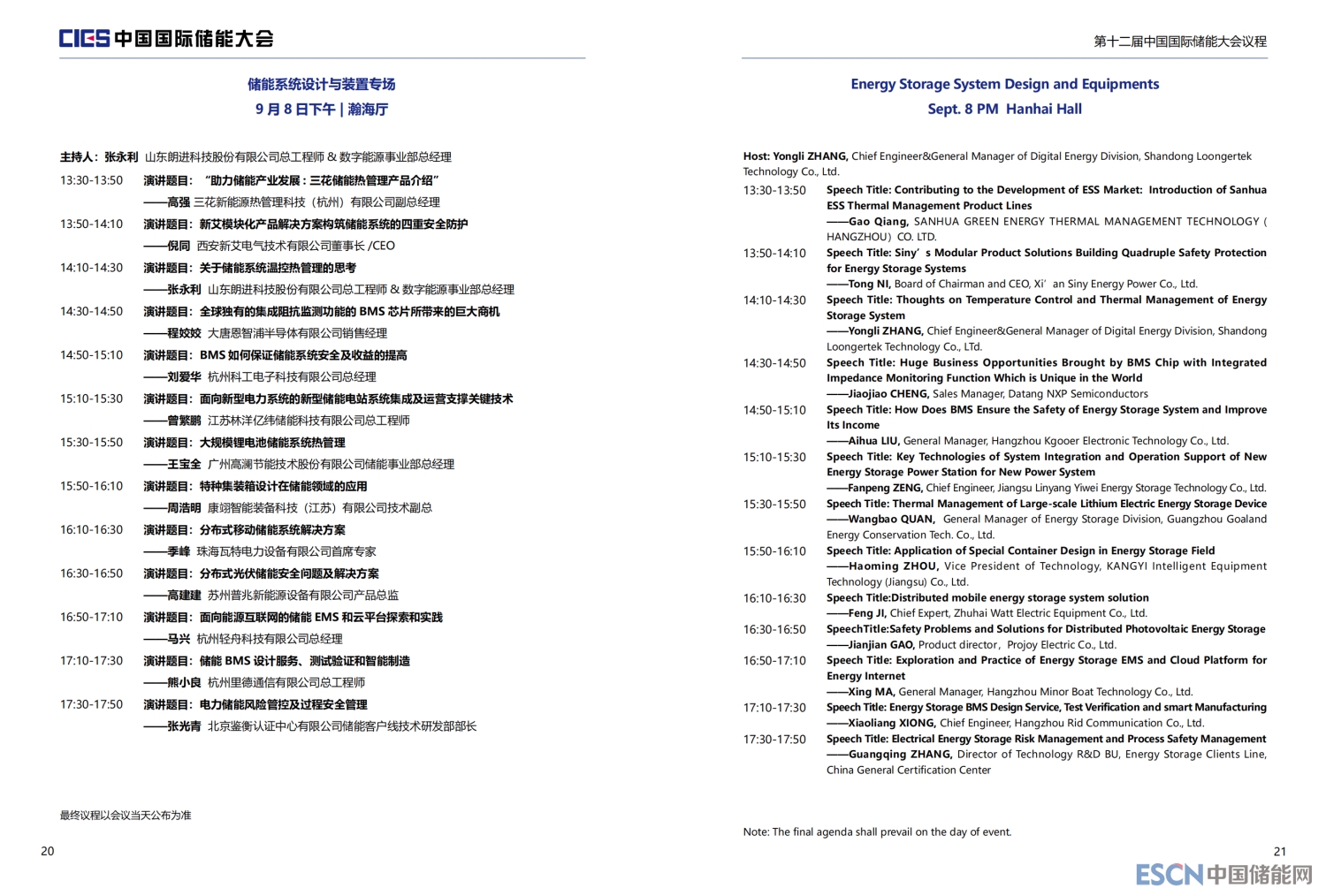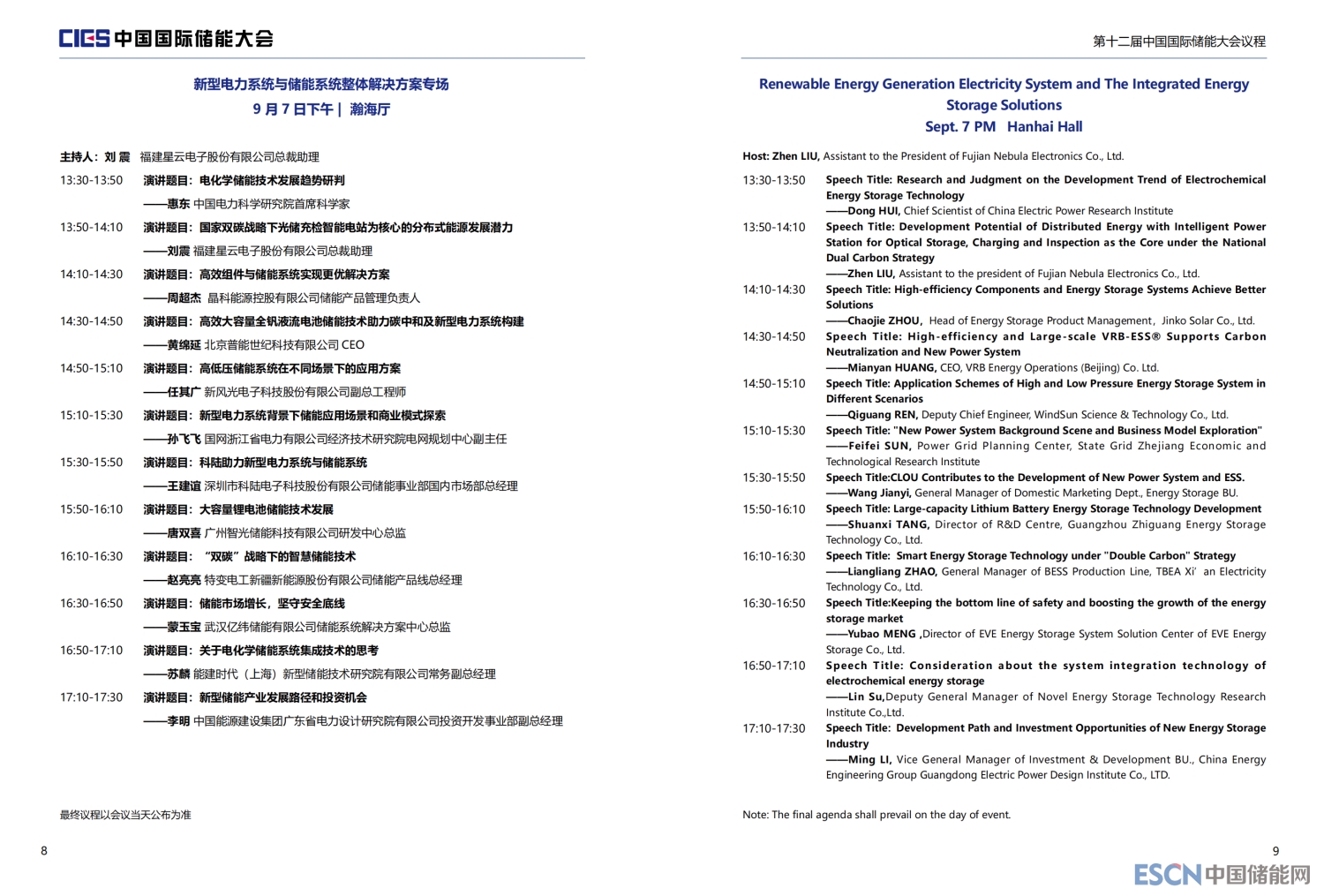 本次大會將安排有大會開幕式、院士專題報告及儲能產(chǎn)業(yè)高峰對話、“雙碳”目標下儲能產(chǎn)業(yè)發(fā)展新路徑、新型電力系統(tǒng)與儲能系統(tǒng)整體解決方案、儲能安全與系統(tǒng)集成、新型儲能系統(tǒng)集成解決方案、儲能電站規(guī)劃與設計、新型儲能電池技術與應用、儲能檢測、認證與標準、儲能安全與消防系統(tǒng)、儲能系統(tǒng)設計與裝置、新型物理儲能技術及應用、儲能電站并網(wǎng)與調度、儲能與電力市場、儲能資本市場、共享儲能與虛擬電廠、電力輔助服務及現(xiàn)貨交易等16個專場論壇。