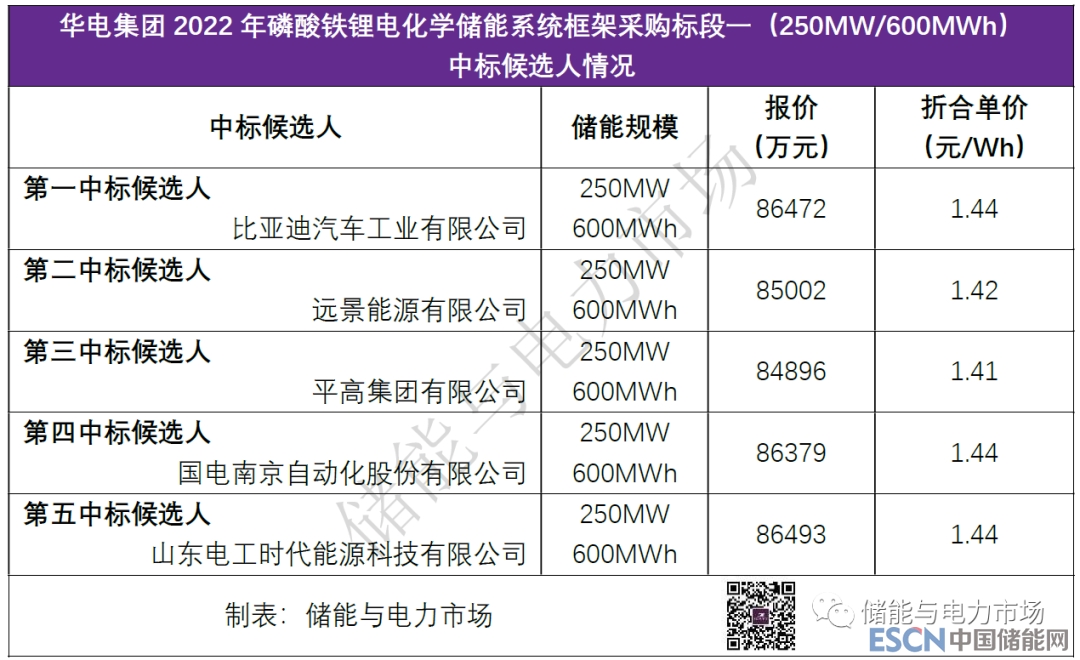 1.41-1.52元/Wh,華電集團(tuán)1.4GWh儲(chǔ)能系統(tǒng)框架采購(gòu)結(jié)果發(fā)布