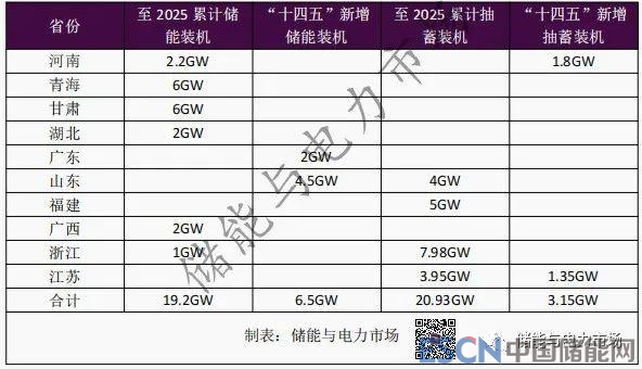 各地區(qū)“十四五”新能源規(guī)劃中提出的儲能和抽水蓄能發(fā)展目標