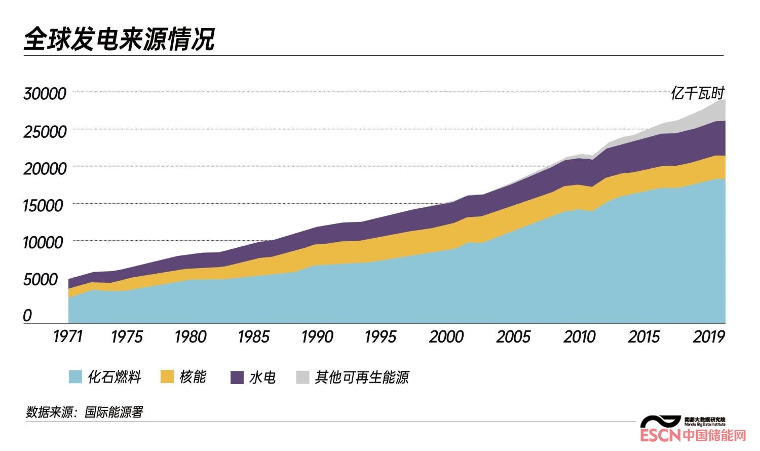 數(shù)據(jù)顯示,以煤炭、石油、天然氣為主的化石燃料在過(guò)去30年為全世界發(fā)電主要能源來(lái)源,在2019年占據(jù)全球發(fā)電量的63.3%。而包括水電、風(fēng)能、太陽(yáng)能、地?zé)崮芎统毕茉趦?nèi)的可再生能源比例逐年增加,占據(jù)2019年全球發(fā)電量的26.5%。世界對(duì)于傳統(tǒng)化石燃料的依賴依然比較嚴(yán)重。