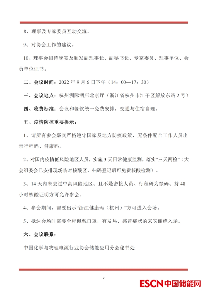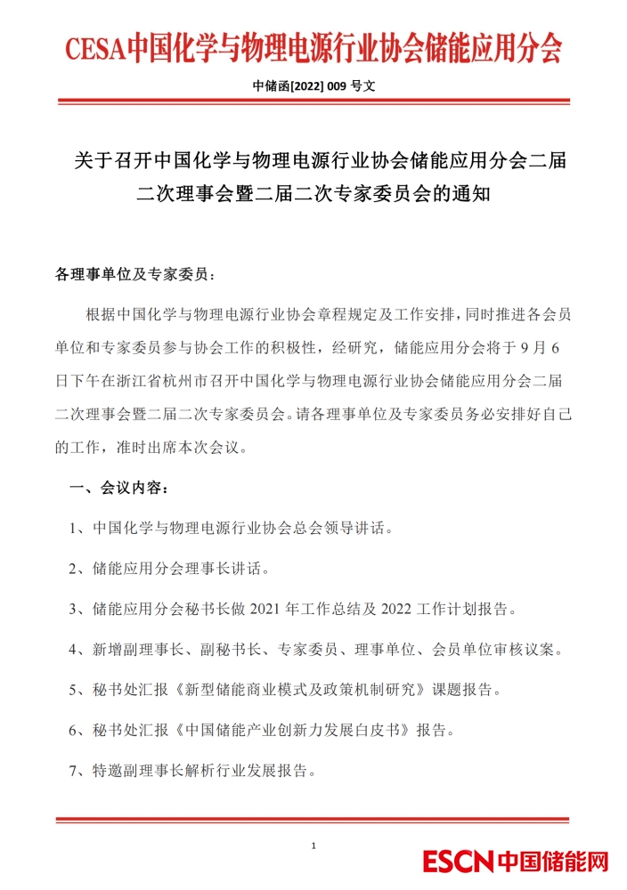 關(guān)于召開中國(guó)化學(xué)與物理電源行業(yè)協(xié)會(huì)儲(chǔ)能應(yīng)用分會(huì)二屆二次理事會(huì)暨二屆二次專家委員會(huì)的通知