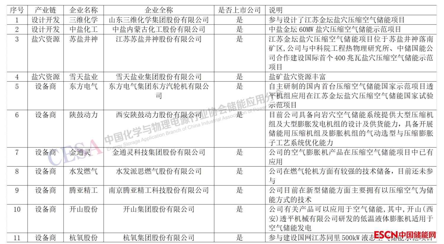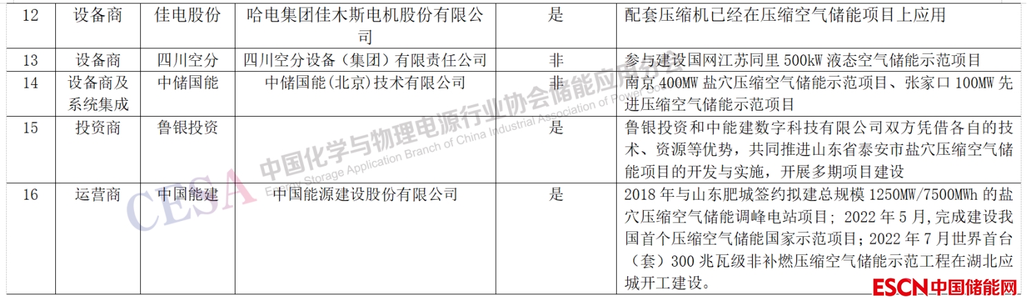 表3 2022國(guó)內(nèi)壓縮空氣儲(chǔ)能產(chǎn)業(yè)鏈重點(diǎn)企業(yè)一覽表